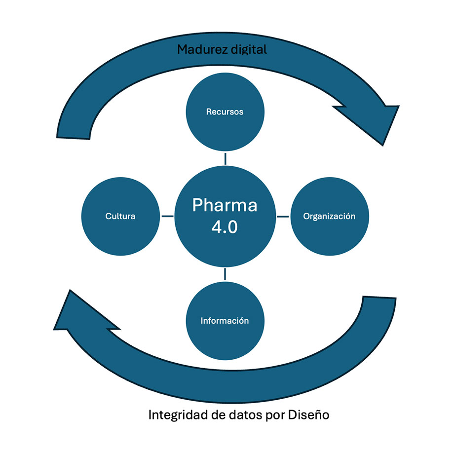 A través de la madurez digital en conjunto con la Integridad de datos por Diseño, los elementos del modelo operativo de Pharma 4.0 (Recursos, Organización, Información y Cultura) facilitan la aplicación de las tecnologías digitales y emergentes que conducen a procesos de manufactura más robustos y flexibles, cada uno de los elementos de este modelo operativo requiere su propia escala de maduración para crear las condiciones de madurez digital. Esta integración tecnológica, ayuda a su vez a las industrias de la salud a enfrentar desabastos, reducir las interrupciones en la producción y entrega de medicamentos e insumos para la salud, así como a asegurar el desempeño clínico consistente de los productos, entre otros beneficios.
